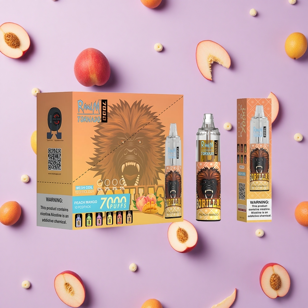 אפרסק מנגו RandM Fumot Tornado 7000 Puffs אידוי חד פעמי סוללת 850MAH