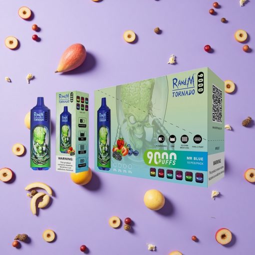 כחול Mr RandM Fumot Tornado 9000 Puffs סוללה נטענת 850 mAh