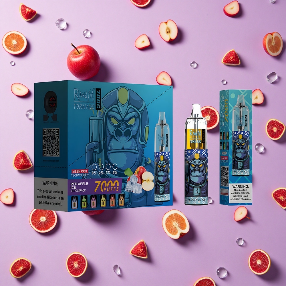 תפוח אדום קרח RandM Fumot Tornado 7000 Puffs סוללה 850 MAH